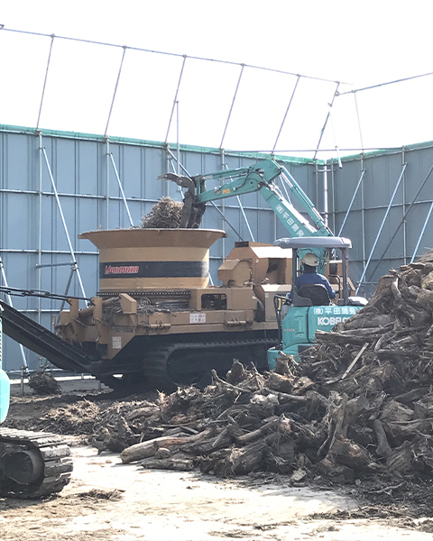 木質系リサイクルの事業所として、資源の再利用を行い地域防災、地域発展に尽力いたします。